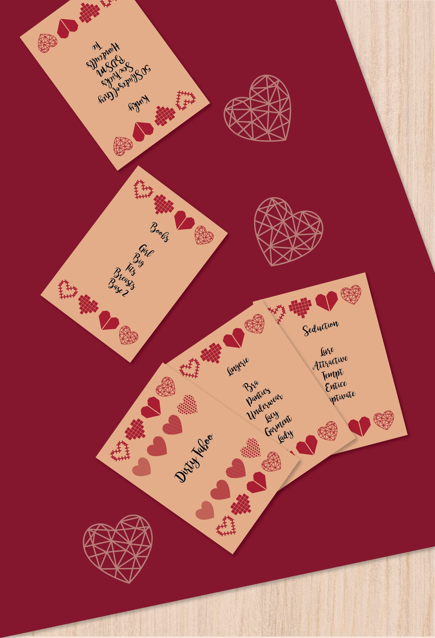 What's inside: 20 dirty taboo playing cards with rules card